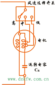 風扇使用的單相電動機一般采用電容分相式。要求這種電機噪聲低、運轉平穩、振動小、效率高、重量輕、體積小,且能調節轉速(一般分“高”、“中”、“低”三檔或“高”、“低”二檔)。
