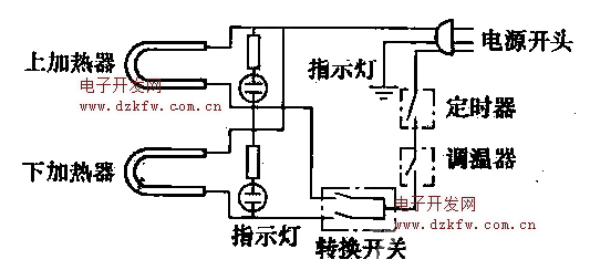 電烤箱是利用電熱元件所發出的輻射熱來烘烤食品的電熱器具,利用它我們可以制作烤雞、烤鴨、烘烤面包、糕點等。根據烘烤食品的不同需要,電烤箱的溫度一般可在50-250℃范圍內調節。電烤箱主要由箱體、電熱元件、調溫器、定時器和功率調節開關等構成。其箱體主要由外殼、中隔層、內膽組成三層結構,在內膽的前后邊上形成卷邊,以隔斷腔體空氣;在外層腔體中充填絕緣的膨脹珍珠巖制品,使外殼溫度大大減低;同時在門的下面安裝彈簧結構,使門始終壓緊在門框上,使之有較好的密封性。