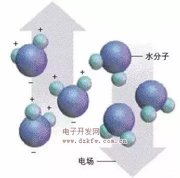 水分子存在于大多數(shù)食物中。水分子的“兩端”分別帶有正電荷和負(fù)電荷。電場(chǎng)會(huì)使水分子的正電荷端指向同一個(gè)方向。微波電場(chǎng)的正、負(fù)極方向每秒鐘轉(zhuǎn)換49億次,水分子也不停地隨之轉(zhuǎn)換方向。隨著水分子不斷轉(zhuǎn)向,彼此發(fā)生碰撞,相互摩擦進(jìn)而產(chǎn)生熱量。陶瓷和玻璃容器中不含水分,因而不會(huì)發(fā)熱,但變熱的食物會(huì)通過(guò)熱傳導(dǎo)使它們變熱。