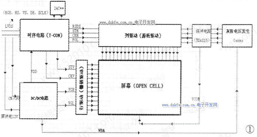 1、時序電路:核心電路,控制掃描驅(qū)動的啟動,并將數(shù)字LVDS視頻信號轉(zhuǎn)化為數(shù)據(jù)信號形式。