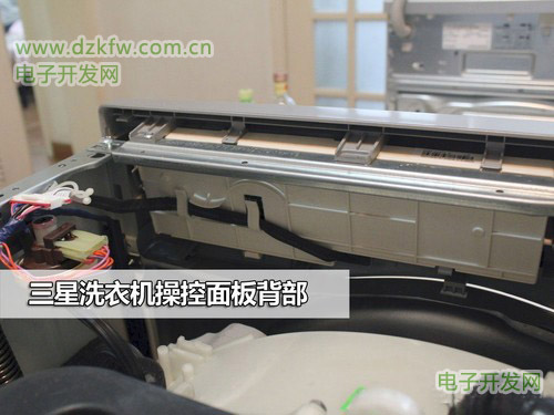 三星洗衣機的控制面板封裝在這個白色的盒子里,通過線路連接電源與電機。