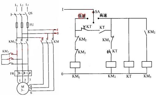 1、雙速三相交流異步電動機手動控制變極調(diào)速線路