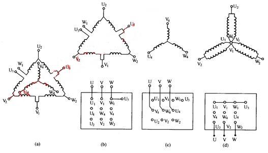 雙速電動機定子繞組的結(jié)構(gòu)及接線方式如圖所示。
