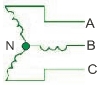 星形接法應(yīng)用于汽車大部分的發(fā)電機,三個線圈的公共端稱為中性點,用N表示,中性點N常用于控制充電指示系統(tǒng)。