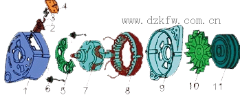 7-轉(zhuǎn)子 8-定子總成 9-前端蓋 10-風(fēng)扇 11-皮帶輪