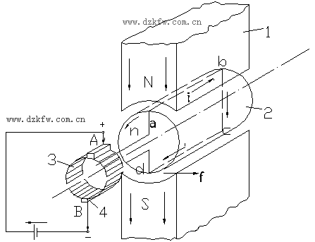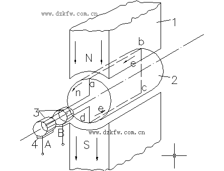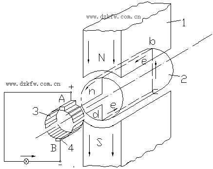 1—磁極;2—電樞;3—換向器;4—電刷 1—磁極;2—電樞;3—換向器;4—電刷