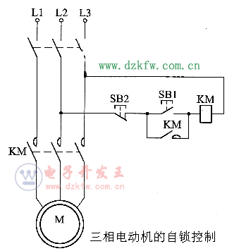 圖5-9為具有自鎖環(huán)節(jié)的控制電路原理圖,它和點動電路比較,在起動按鈕SB1的兩端并聯(lián)了接觸器KM的常開輔助觸頭,當(dāng)按下SB1后,接觸器KM的線圈通電,KM的主、輔觸頭都閉合,電動機轉(zhuǎn)動。當(dāng)松開SB1時,KM的線圈并不斷電,而是通過KM的輔助觸頭通電,這個常開輔助觸頭對接觸器KM來說,具有自鎖作用,又稱為自鎖觸頭。