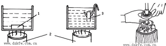1—軸承不能放在槽底;2—火爐;3—軸承應吊在槽中;