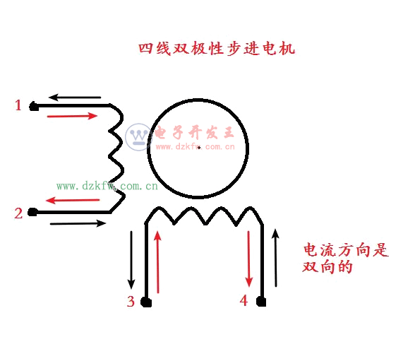 四線雙極性步進電機就是有4個接線口,導電方式是允許雙向的。