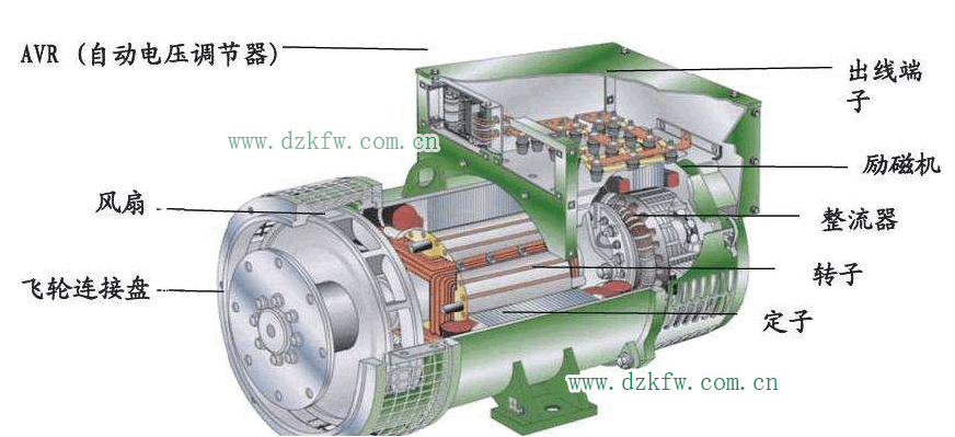 2、交流勵磁機供電的勵磁方式 代大容量發電機有的采用交流勵磁機提供勵磁電流。交流勵磁機也裝在發電機大軸上,它輸出的交流電流經整流后供給發電機轉子勵磁,此時,發電機的勵磁方式屬他勵磁方式,又由于采用靜止的整流裝置,故又稱為他勵靜止勵磁,交流副勵磁機提供勵磁電流。交流副勵磁機可以是永磁機或是具有自勵恒壓裝置的交流發電機。為了提高勵磁調節速度,交流勵磁機通常采用100——200HZ的中頻發電機,而交流副勵磁機則采用400——500HZ的中頻發電機。這種發電機的直流勵磁繞組和三相交流繞組都繞在定子槽內,轉子只有齒與槽而沒有繞組,像個齒輪,因此,它沒有電刷,滑環等轉動接觸部件,具有工作可靠,結構簡單,制造工藝方便等優點。缺點是噪音較大,交流電勢的諧波分量也較大。