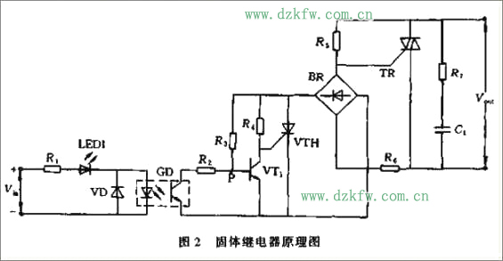 當(dāng)輸入3-32VDC后 GD光耦發(fā)光管發(fā)光導(dǎo)通,TR可控硅電子開關(guān)導(dǎo)通。