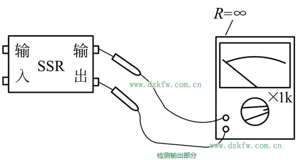 檢測固態繼電器輸出部分如下圖所示,用萬用表測量固態繼電器輸出端兩引腳之間的正、反向電阻,均應為無窮大。