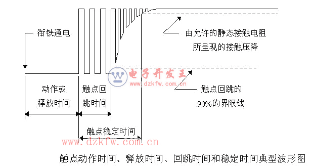 繼電器觸點(diǎn)動作時(shí)間、釋放時(shí)間、回跳時(shí)間和穩(wěn)定時(shí)間典型波形圖