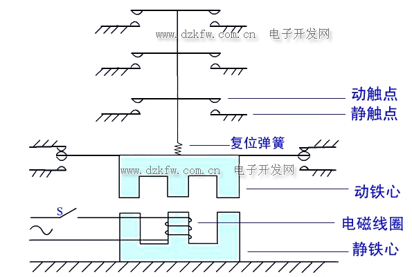 電磁系統:它包括線圈、靜鐵心和動鐵心(又稱銜鐵)。