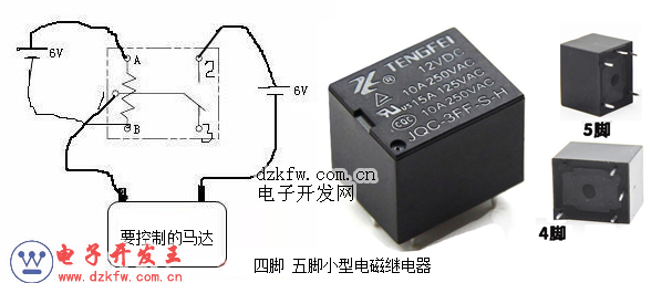 另外2個腳分別是常開和常閉觸點,如下圖:A、B 腳接驅動電路端。要控制的電路接1腳和2 腳或3腳 (3腳常閉,2腳常開):