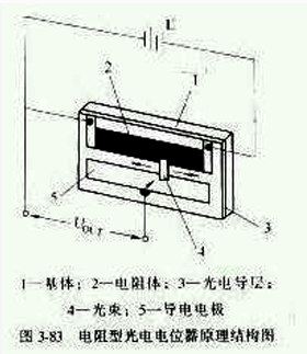 光電電位器是一種非接觸式電位器。它用光束代替一般電位器上的活動觸點--電刷。圖3-83是一種電阻型光電電位器的原理結構圖。電阻型光電電位器主要由電阻體。光電導層和導電電極等組成。光電電位器的制作過程是:先在基體上沉積一層硫化鎘或硒化鎘的光導電層,然后在我導電層上再沉積一條電阻體和一條導電電極。在電阻體和導電電極之間留有一個狹窄的間隙。平時無光照時。電阻體和導電電極之間由于光電導層阻值很大而呈絕緣狀態。當光束照射部位和導電電極導通,于是光電電位器的輸出端便有電壓輸出,輸出電壓的大小與光束位移照射到的位置有關,從而實現了將光束位移換為電壓輸出,輸出電壓的大小與光束位移照射到的位置有關,從而實現了將光束位移換為電壓信號輸出。