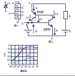 若門極電流為Ig,則可控硅陰極電流為Ik=Ia+Ig