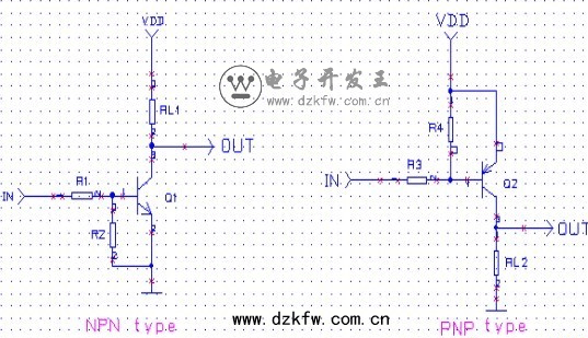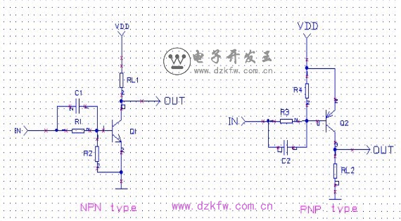 1.2 實(shí)用的NPN型和PNP型開關(guān)原理圖1