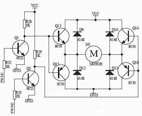 驅(qū)動電機時,保證H橋上兩個同側(cè)的三極管不會同時導(dǎo)通非常重要。如果三極管Q1和Q2同時導(dǎo)通,那么電流就會從正極穿過兩個三極管直接回到負(fù)極。此時,電路中除了三極管外沒有其他任何負(fù)載,因此電路上的電流就可能達(dá)到最大值(該電流僅受電源性能限制),甚至燒壞三極管。基于上述原因,在實際驅(qū)動電路中通常要用硬件電路方便地控制三極管的開關(guān)。