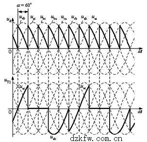 圖4 三相橋式全控整流電路波形(電感性負載,α=60°)