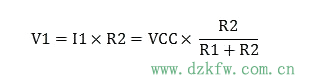 通過(guò)歐姆定律可以計(jì)算出每個(gè)電阻兩端的電壓。在R1和R2這兩個(gè)橋臂上,R1,R2將VCC電壓分壓,R2電阻兩端得到的電壓即為V1;在R3和Rx這個(gè)橋臂上,R3,Rx將VCC電壓分壓,R3電阻兩端得到的電壓即為V2。下面分別用歐姆定律計(jì)算V1和V2。