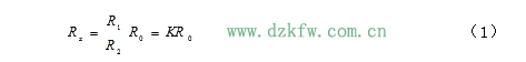 電阻R1、R2為電橋的比率臂,xR為待測臂,R0為比較臂,R0作為比較的標準,實驗室常用電阻箱。由(1)式可以看出,待測電阻xR由比率值K和標準電阻0R決定,比值K可以作成10n,這是成品電橋常用的方法。