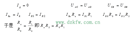 電橋平衡的條件是B,D兩點電位相等,即I1R1=I2R2,IxRx=IsRs。