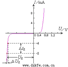 在穩定電壓范圍內,管子兩端電壓的變化量與工作電流的變化量之比。 即 rZ =△UZ /△IZ