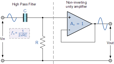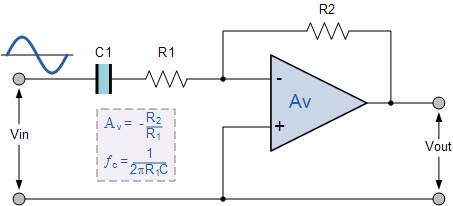 高電平的基本操作通過濾波器(HPF)與其等效RC無源高通濾波器電路相同,不同之處在于該電路具有運算放大器或包含在其設計中,提供放大和增益控制。