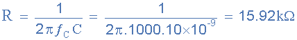 截止轉角頻率為 1kHz ,電容為 10nF ,值為因此, R 將是: