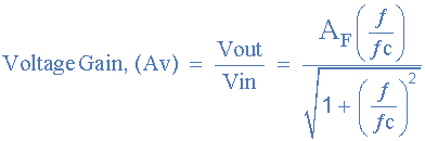 對于非反相放大器電路,其幅度濾波器的電壓增益是反饋電阻( R2 )除以相應的輸入電阻( R1 )值的函數,給出如下: