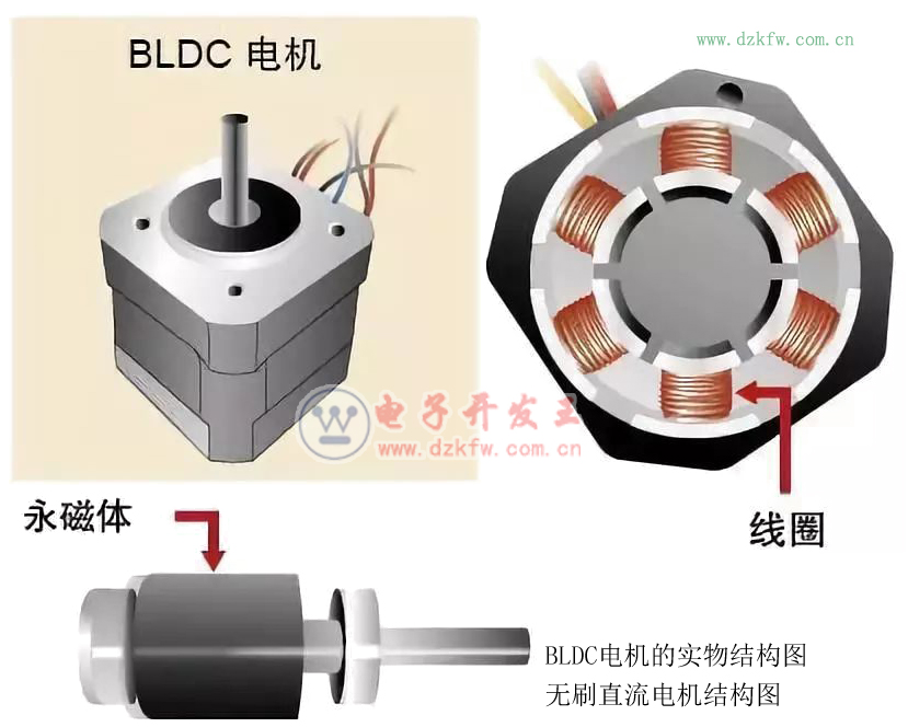 圖1:BLDC電機(jī)的外觀及內(nèi)部構(gòu)造