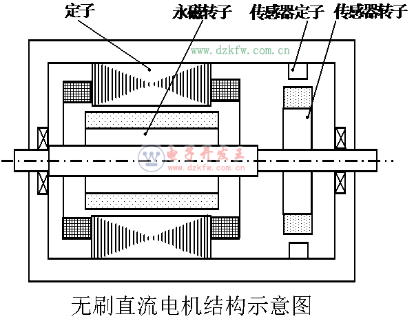 無刷直流電機(jī)由同步電動(dòng)機(jī)和驅(qū)動(dòng)器組成,是一種典型的機(jī)電一體化產(chǎn)品。同步電動(dòng)機(jī)的定子繞組多做成三相對(duì)稱星形接法,同三相異步電動(dòng)機(jī)十分相似。而轉(zhuǎn)子上粘有已充磁的永磁體,為了檢測(cè)電動(dòng)機(jī)轉(zhuǎn)子的極性,在電動(dòng)機(jī)內(nèi)裝有位置傳感器。驅(qū)動(dòng)器由功率電子器件和集成電路等構(gòu)成,其功能是:接受電動(dòng)機(jī)的啟動(dòng)、停止、制動(dòng)信號(hào),以控制電動(dòng)機(jī)的啟動(dòng)、停止和制動(dòng);接受位置傳感器信號(hào)和正反轉(zhuǎn)信號(hào),用來控制逆變橋各功率管的通斷,產(chǎn)生連續(xù)轉(zhuǎn)矩;接受速度指令和速度反饋信號(hào),用來控制和調(diào)整轉(zhuǎn)速;提供保護(hù)和顯示等等。在無刷直流電機(jī)中,借助反映主轉(zhuǎn)子位置的位置傳感器的輸出信號(hào),通過電子換相線路去驅(qū)動(dòng)與電樞繞組連接的相應(yīng)的功率開關(guān)器件,使電樞繞組依次饋電,從而在定子上產(chǎn)生跳躍式的旋轉(zhuǎn)磁場(chǎng),驅(qū)動(dòng)永磁轉(zhuǎn)子旋轉(zhuǎn)。隨著轉(zhuǎn)子的轉(zhuǎn)動(dòng),位置傳感器不斷地送出信號(hào),以改變電樞繞組的通電狀態(tài),使得在某一磁極下導(dǎo)體中的電流方向始終保持不變,這就是無刷直流電機(jī)的玩接觸式換相過程。