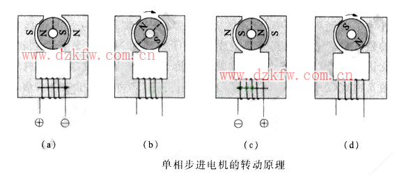 以上所述的單相步進電機的旋轉(zhuǎn)方向由磁導(dǎo)的偏差大小決定。其他還有將定子磁極分極、嵌入銅質(zhì)的短路線圈等,在本學(xué)習(xí)課程中就不再詳述了。
