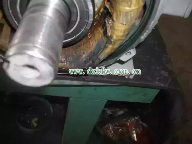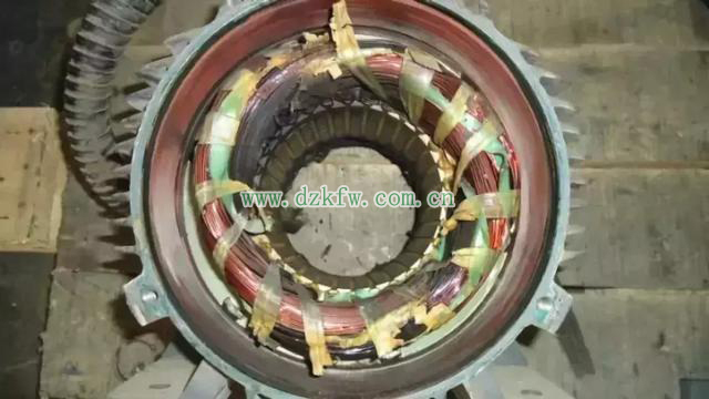 繞組全部變黑色,端部扎帶變色并且變脆甚至斷裂。