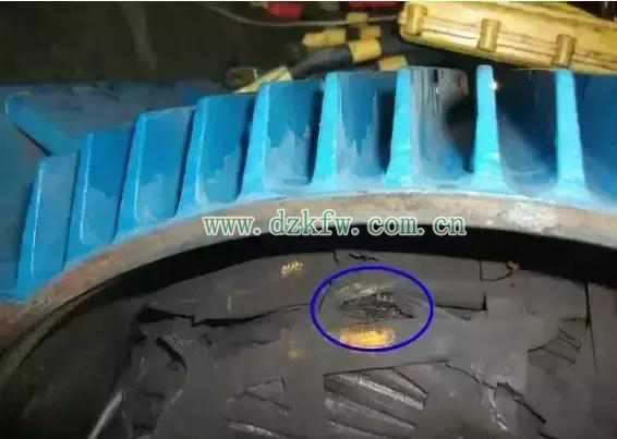 繞組局部燒斷,通常電機內腔干凈的情況,只有一處炸點。
