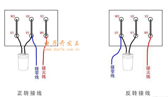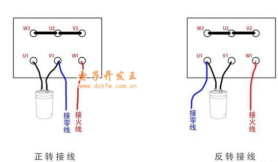 在上面的接線中,零火線可以調換;如果需要反轉把接電容的一條線換到電容的另外一端即可。