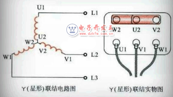 ■這種結構的三相電動機U1~U2為一個線圈繞組;V1~V2為第二個線圈繞組;W1~W2為第三個線圈繞組。它們三個線圈繞組的U1、V1、W1正常情況下都是作為電動機的引入接線端子;而U2、V2、W2一般都是將其用短接片連接在一起。這樣三個線圈繞組每組承受的電壓為相電壓220V;而U1、V1、W1它們之間每兩個線圈繞組所承受的電壓為線電壓380V。