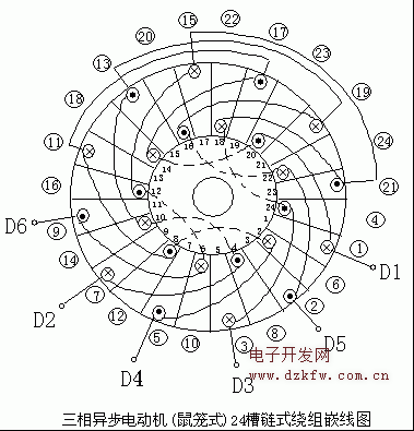 確定第一個槽位置時,應考慮使嵌完線后,引線對稱地位于出線孔的兩側,最好是從出線孔的對面引過來,單層繞組的嵌線順序,一般習慣都是后退進行。