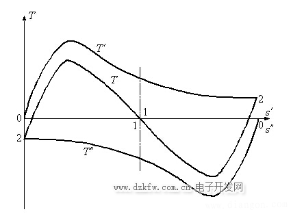 < 1范圍內, 對于正向旋轉磁場來說,電機運行于電動機狀態,T'是驅動轉矩;但對反向旋轉磁場,電機運行于電磁制動狀態,T"為一制動轉矩,因比合成轉矩T=T'-T">0,在該合成轉矩的作用下,電動機轉子得以繼續轉動。同理,在0<