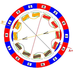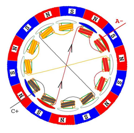 要講清這一問題,那就應粗略地了解一下有刷馬達的工作原理。接下來用一個三電極、二磁極內轉子有刷馬達作為演示。