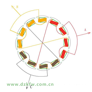 圖為12繞組14極(即7對極),電機繞組繞發圖 后面畫出了6種兩相通電的情形,可以看出,盡管繞組和磁極的數量可以有許多種變化,但從電調控制的角度看,其通電次序其實是相同的,也就是說,不管外轉子還是內轉子電機,都遵循AB->AC->BC->BA->CA->CB的順序進行通電換相。當然,如果你想讓電機反轉的話,電子方法是按倒過來的次序通電;物理方法直接對調任意兩根線,假設A和B對調,那么順序就是BA->BC->AC->AB->CB->CA,大家有沒有發現這里順序就完全倒過來了。