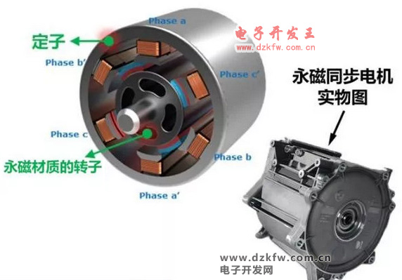 按電動(dòng)機(jī)定子繞組的電流波形的不同,可分無刷直流電機(jī)和永磁同步電機(jī)兩種類型,這兩種電機(jī)在結(jié)構(gòu)和工作原理上大體相同,轉(zhuǎn)子都是永磁體,減少了勵(lì)磁所帶來的損耗,定子上安裝有繞組通過交流電來產(chǎn)生轉(zhuǎn)矩,所以冷卻相對(duì)容易。由于這類電機(jī)不需要安裝電刷和機(jī)械換向結(jié)構(gòu),工作時(shí)不會(huì)產(chǎn)生換向火花,運(yùn)行安全可靠,維修方便,能量利用率較高。