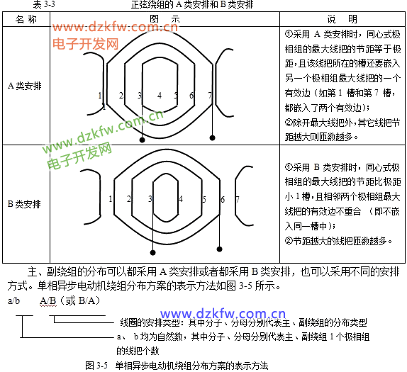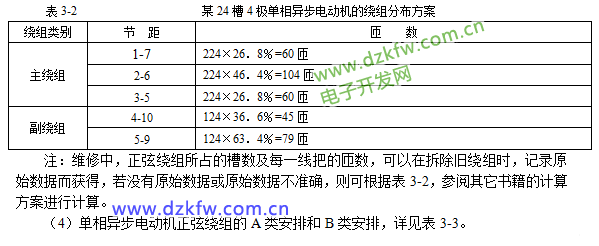 (4)單相異步電動機正弦繞組的A類安排和B類安排,詳見表3-3。