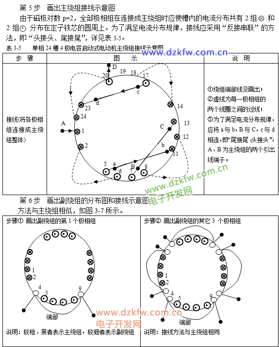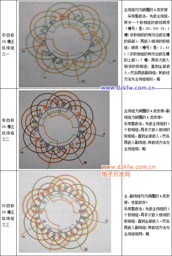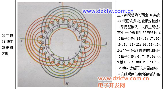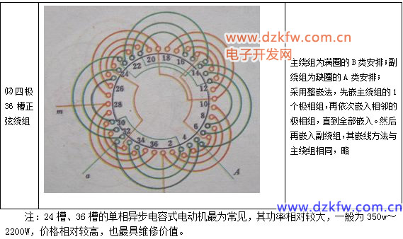 由于啟動型電動機主繞組占總槽數的2/3,副繞組占總槽數的1/3,所以主繞組占16槽,副繞組占8槽;