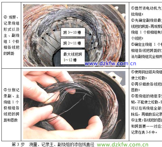 注:維修中,正弦繞組所占的槽數及每一線把的匝數,可以在拆除舊繞組時,記錄原始數據而獲得,若沒有原始數據或原始數據不準確,則可根據表3-2,參閱其它書籍的計算方案進行計算。