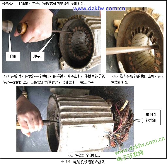 熱拆法適用于繞組局部繞壞及槽滿率較高的電動機,因為這類繞組較堅韌,不容易用冷拆法將繞組打出。其方法有兩種:
