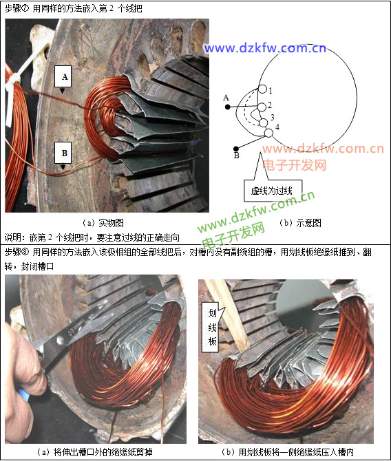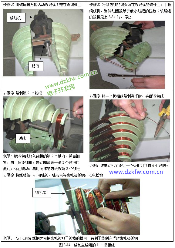 繞制1 個極相組,一般從繞制最小線把開始,按由小到大的順序進行,其操作步驟如圖3-14所示。