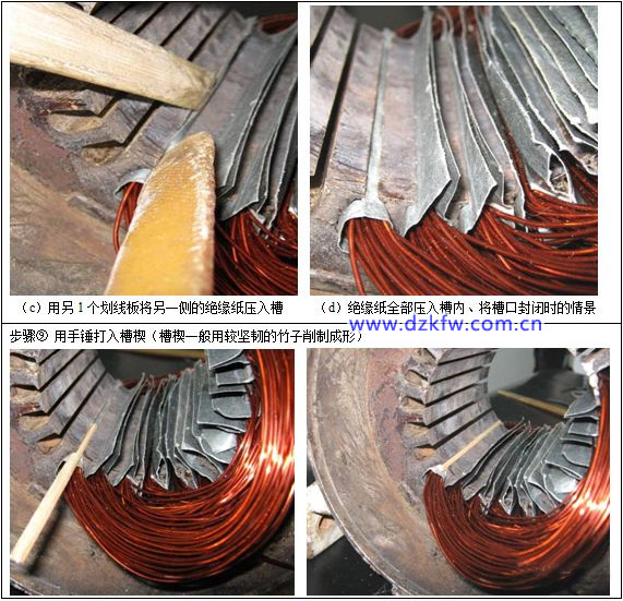 (2)沖子的粗細程度也要與槽口相吻合,若太粗,則容易將硅鋼片打拆、打損或者擠壓槽孔,使鐵芯齒部變形;若太細,既不容易將槽中漆包線打出,沖子也容易被卡在槽內。