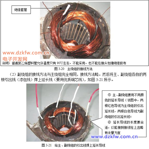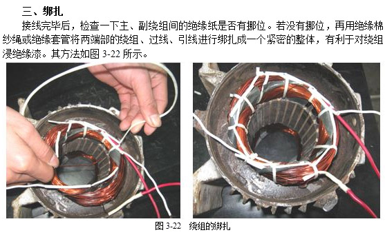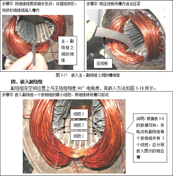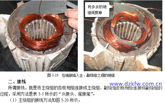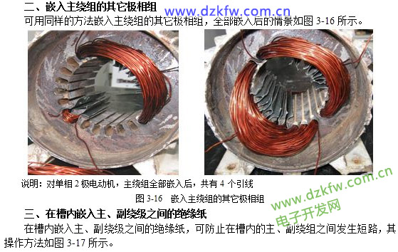 繞制主繞組的其它極相組和副繞組的方法與圖3-13相同,這里不再贅述。